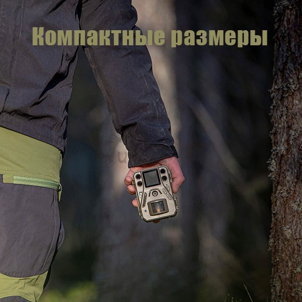Влагозащищённый корпус позволяет использовать фотоловушку в любых погодных условиях. Для крепления предусмотрено стандартное отверстие под винт. Все материалы сохраняются на карту памяти microSD и могут быть просмотрены на встроенном ЖК-экране или компьютере.